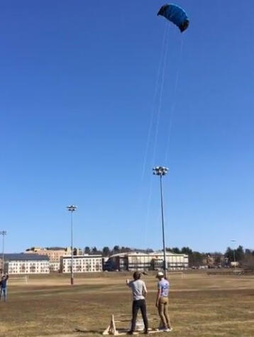 A test flight was arranged in a field. Two operators are required to get the kite into stable flight. It was also determined that weights should be provided to anchor the system.